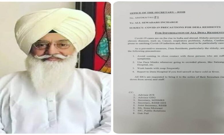 डेरा व्यास द्वारा कोरोना के बढ़ते केस के चलते एडवाइजरी जारी