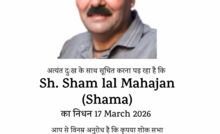 श्रीमती/श्री Sham lal Mahajan (Shama) (M/s. Kumar Iron & Scrap Co.) के आकस्मिक निधन पर हार्दिक संवेदना। यह खबर अत्यंत दुखद है। ईश्वर से प्रार्थना है कि दिवंगत आत्मा को शांति और परिवार को यह अपार दुख सहने की शक्ति दे।