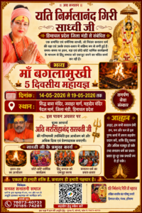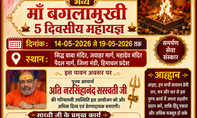 इसी क्रम में ‘माँ बगलामुखी 5 दिवसीय महायज्ञ’ का भव्य आयोजन किया जा रहा है, जो सनातन धर्म की शक्ति, एकता और जागरूकता का प्रतीक है। इस पावन अवसर पर पूज्य संतों का सान्निध्य प्राप्त होगा तथा विशेष रूप से यति नरसिंहानंद जी सरस्वती जी की गरिमामयी उपस्थिति इस आयोजन को और भी दिव्य एवं प्रेरणादायक बनाएगी।